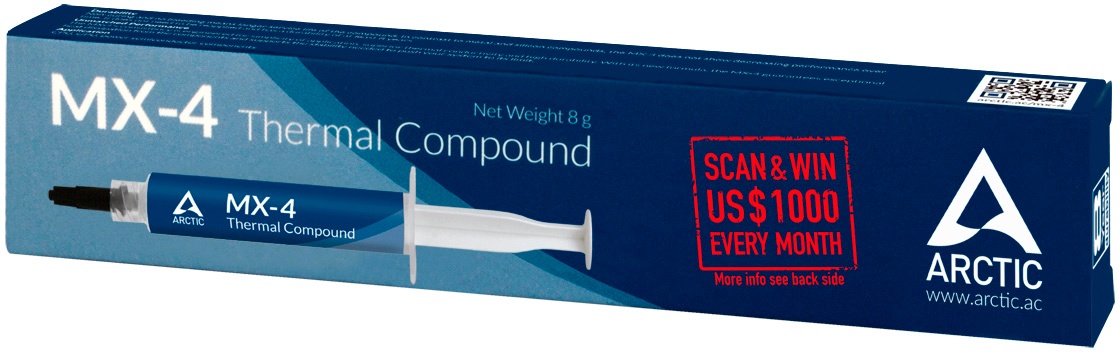 Термопаста Arctic Cooling MX-4 может использоваться при температуре, меняющейся в пределах от -50 до 160 °C. Изделие поставляется в шприце. Этот тип фасовки предполагает высокий уровень удобства нанесения термопасты. Количество термопасты (2 г) достаточно для стандартных условий использования. Шприц с термопастой надежно упакован.